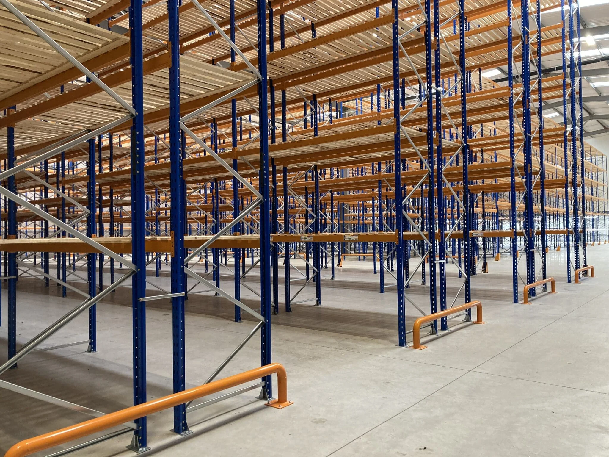 - Pallet racking for bulk items and larger products – selective for access, drive-in for density