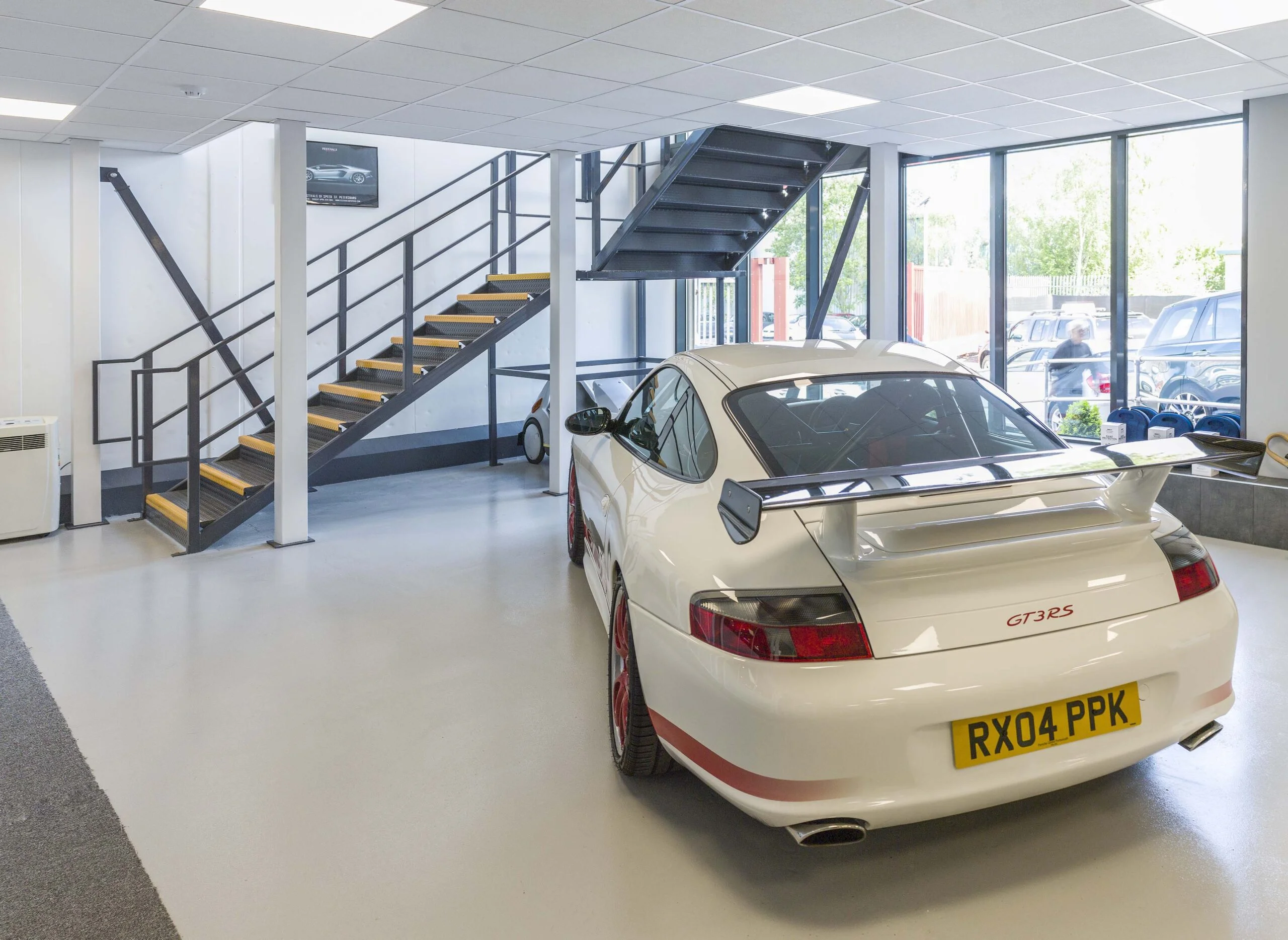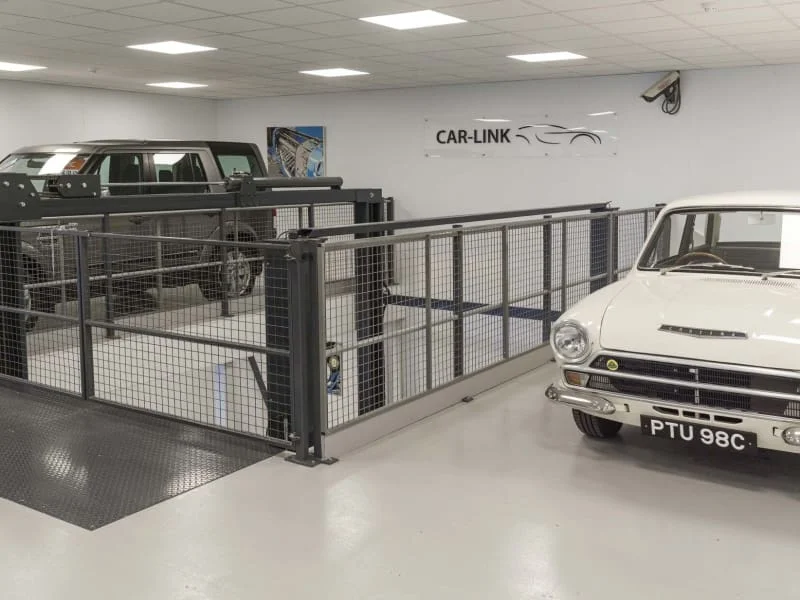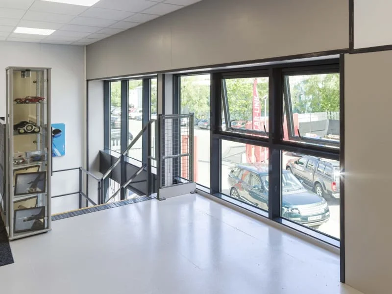 Additionally, the mezzanine floor needed to integrate with the car lift, allowing vehicles to be safely transported between floors, as well as incorporating the existing office spaces. As well as adding a staircase to access the upper level.